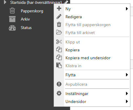 In previous Litium versions, it was possible to right-click in the websites tree and create new content, edit, move etc (see screenshot). It would be great to include such functionality again since we have seen that customers with older versions are using that feature.