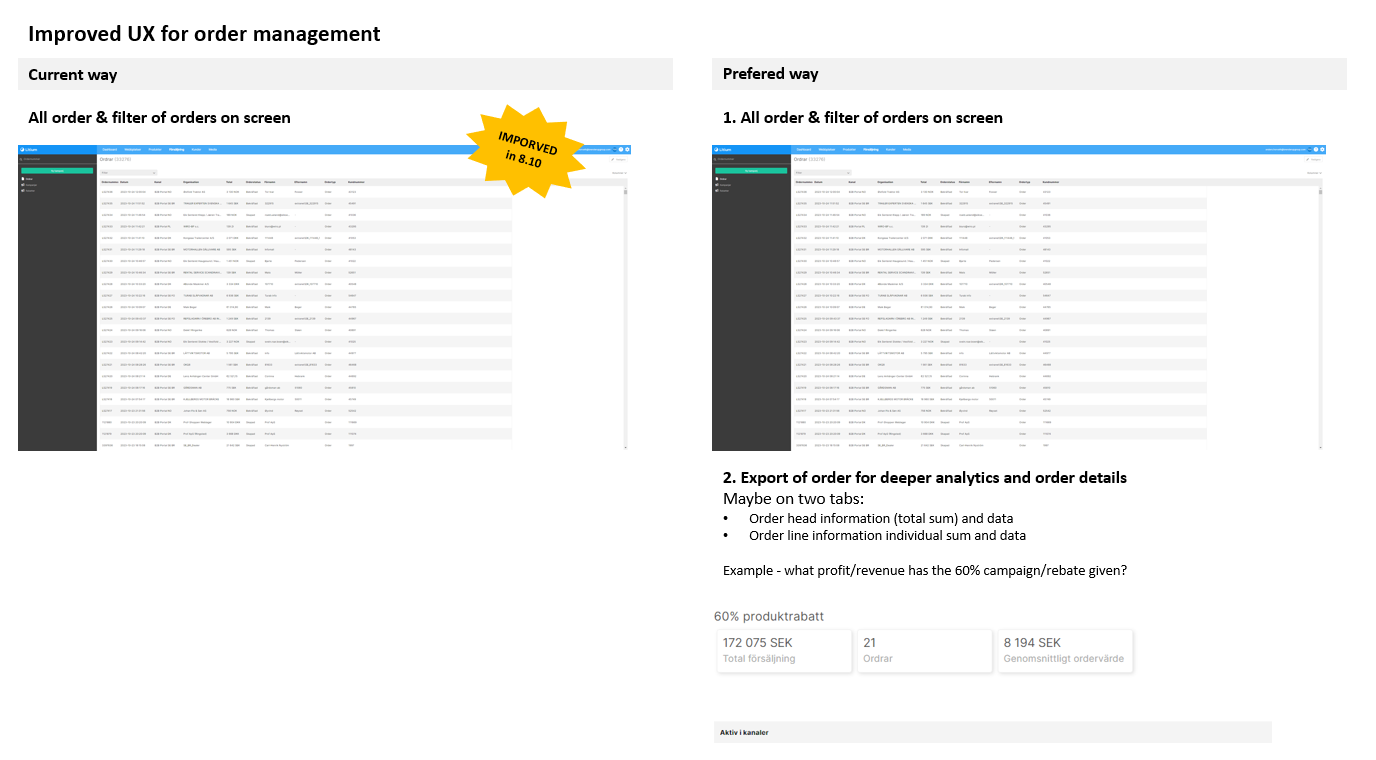 As a way of making deeper analysis of orders it would be required to export the order header and order line data