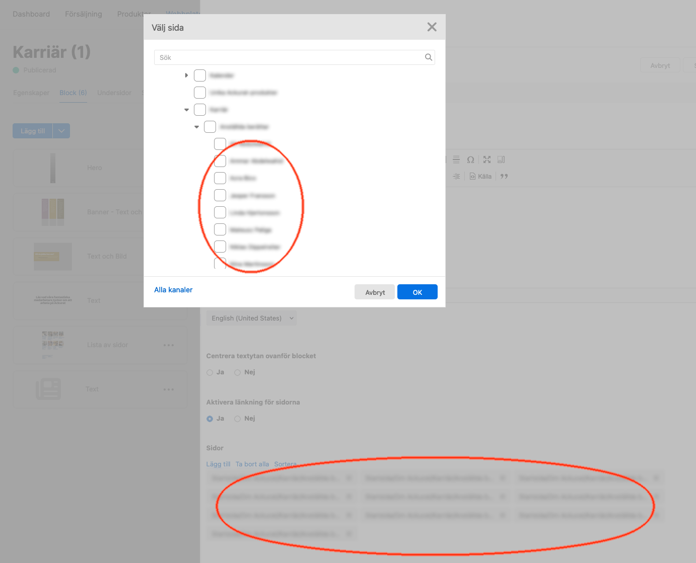 When adding more pages to a pointer field for pages, the already selected pages should be checked in the modal window.