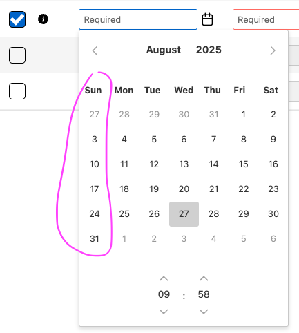Is it that the calendar should have Monday as the first "column" in the calendar where you pick a day (see my attached image)?